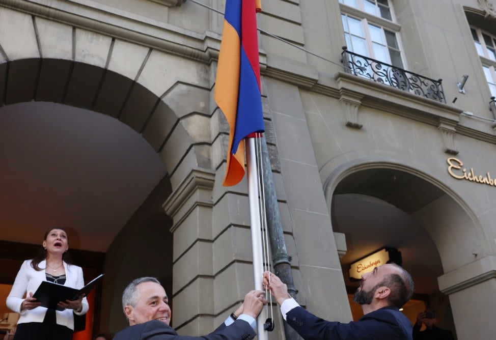 В самом сердце Берна, в исторической части города, включенной в список Всемирного наследия ЮНЕСКО, перед зданием посольства был поднят флаг Республики Армения