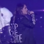 Певица вышла на сцену в костюме, на котором были надписи «Остановите блокаду» (Stop the Blockade) и «Арцах» stickers.panarmenian.net »