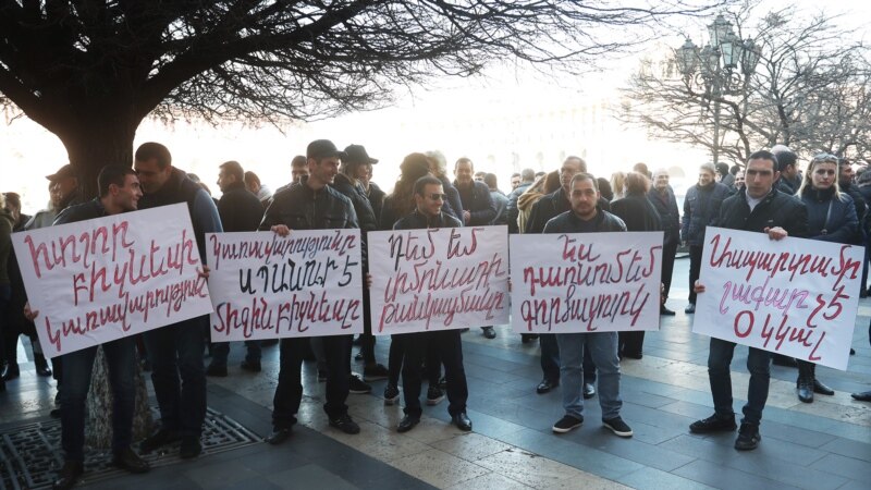 Сотрудники ломбардов и обменных пунктов провели в понедельник акцию протеста у здания правительства Армении против предложенных изменений в закон "О государственной пошлине" arka.am »