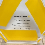Коммерцбанк присвоил Америабанку премию STP Award 2017 Excellent Quality за обеспечение превосходного качества обслуживания клиентов и осуществления денежных переводов