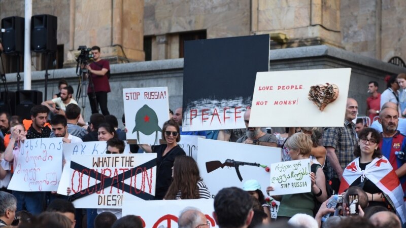 Протестующие в Тбилиси направились к центральному офису "Грузинская мечта - Демократическое движение" с требованием отставки министра внутренних дел Грузии Георгия Гахарии. Спецназ полиции окружил здание, в котором находится офис правящей партии.
