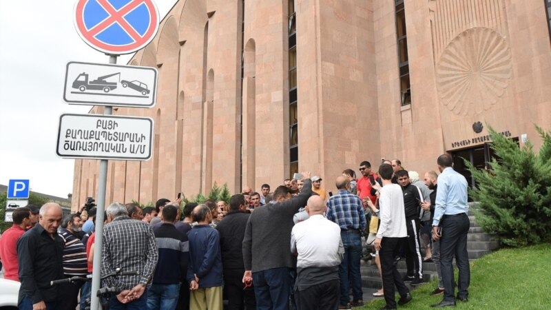 В начале 3-й сессии Совета старейшин Еревана в зале звучал торжественный гимн, а у входа в здание мэрии собрались сотрудники компании «Санитек»: водители, рабочие. Они уже несколько дней, как остались без работы, и у них есть требования к мэрии.